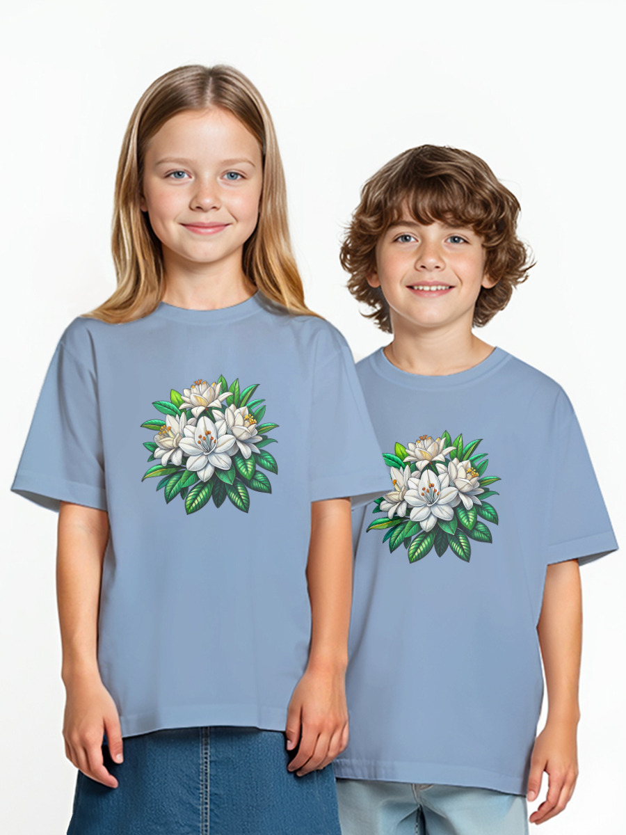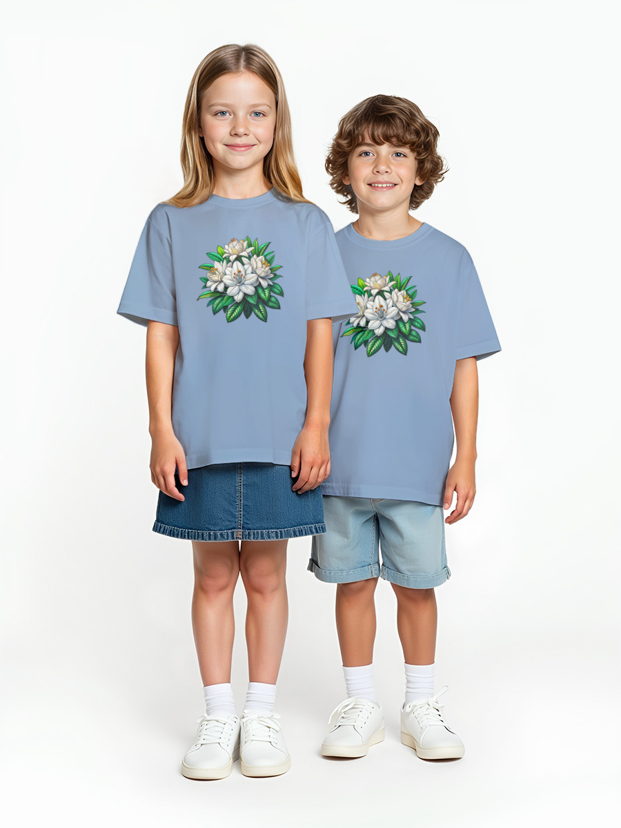 Детская оверсайз футболка «Рододендроны» цвет голубой