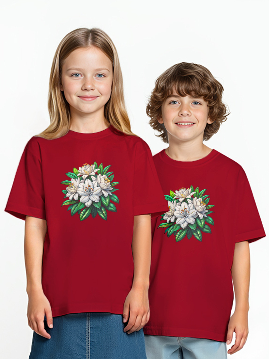 Детская оверсайз футболка «Рододендроны» цвет красный