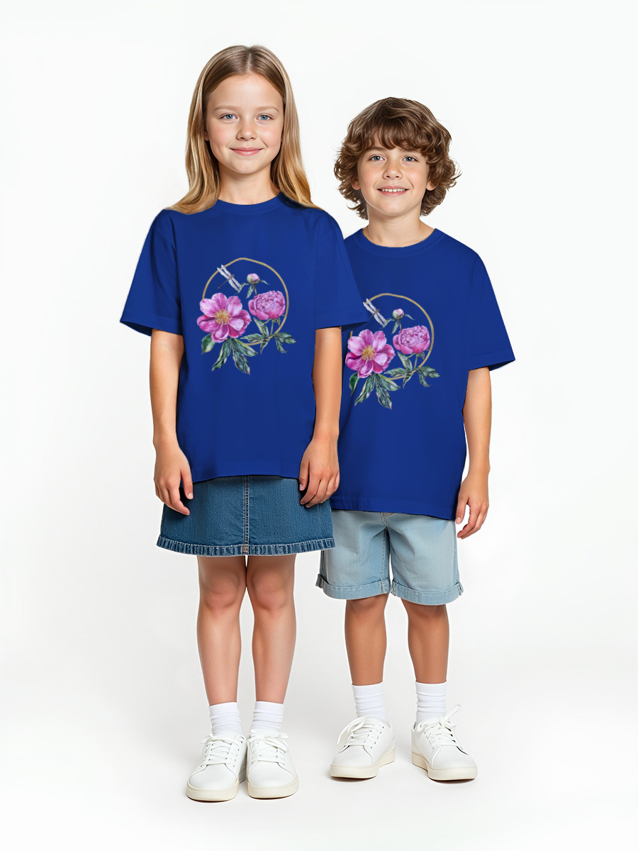 Детская оверсайз футболка «Розовые пионы» цвет синий