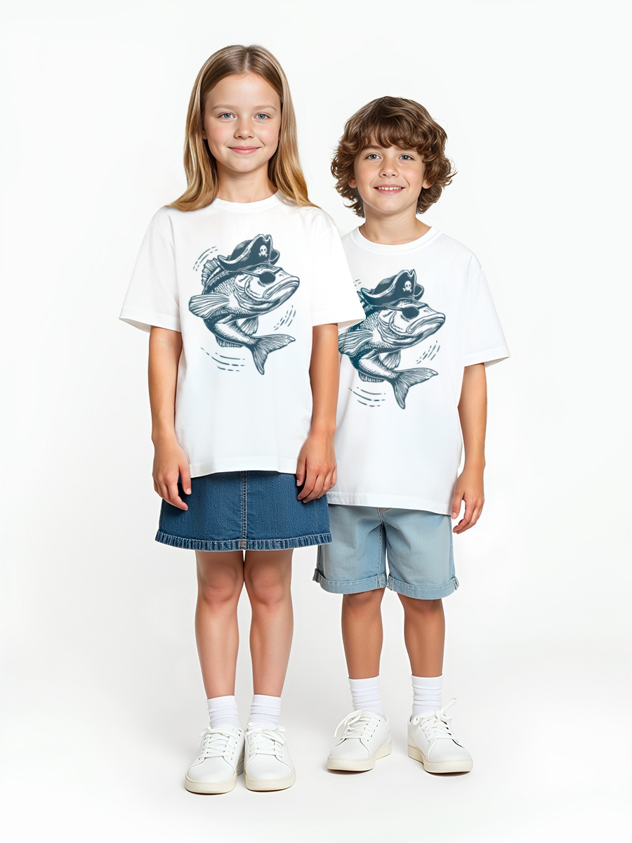 Детская оверсайз футболка «Рыба пират. Капитан корабля. Для моряка, рыбака» цвет белый