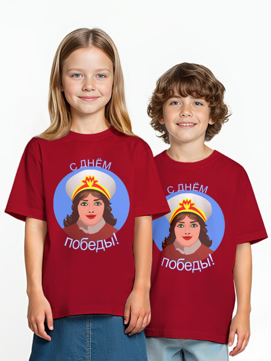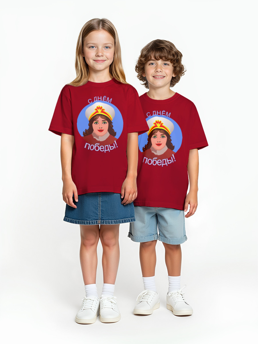 Детская оверсайз футболка «С Днём Победы!» цвет красный