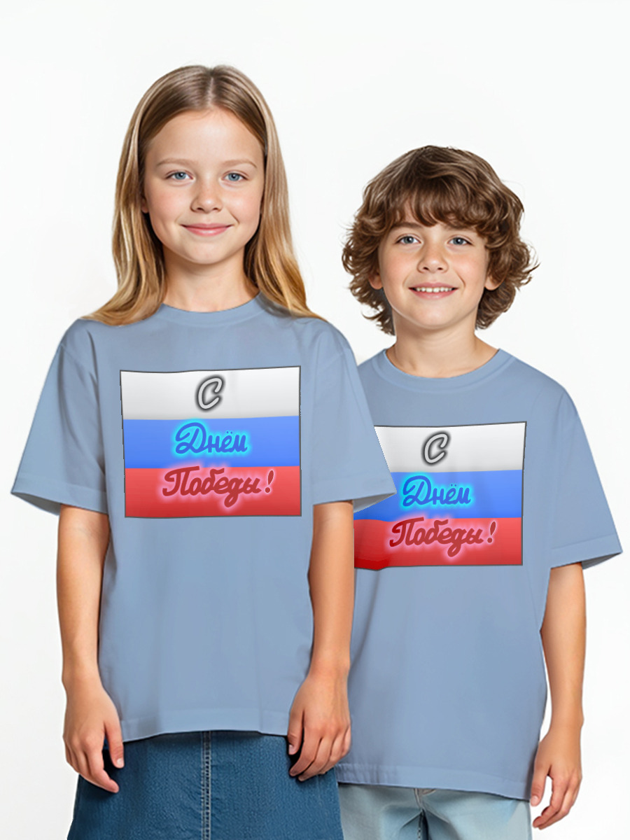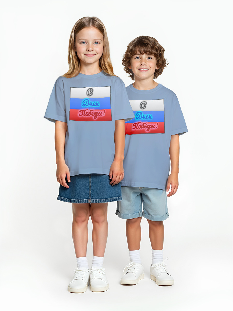 Детская оверсайз футболка «С Днём Победы!» цвет голубой