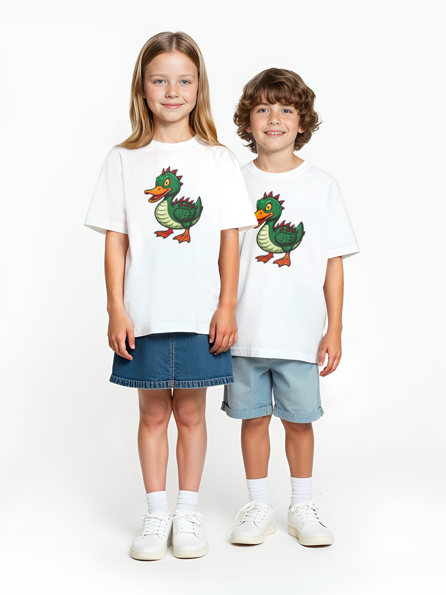 Детская оверсайз футболка «Шипастая утка-монстр» цвет белый