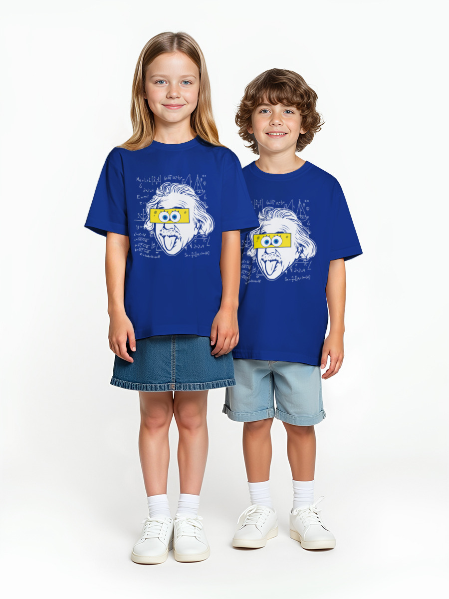 Детская оверсайз футболка «Спанч боб Эйнштейн» цвет синий