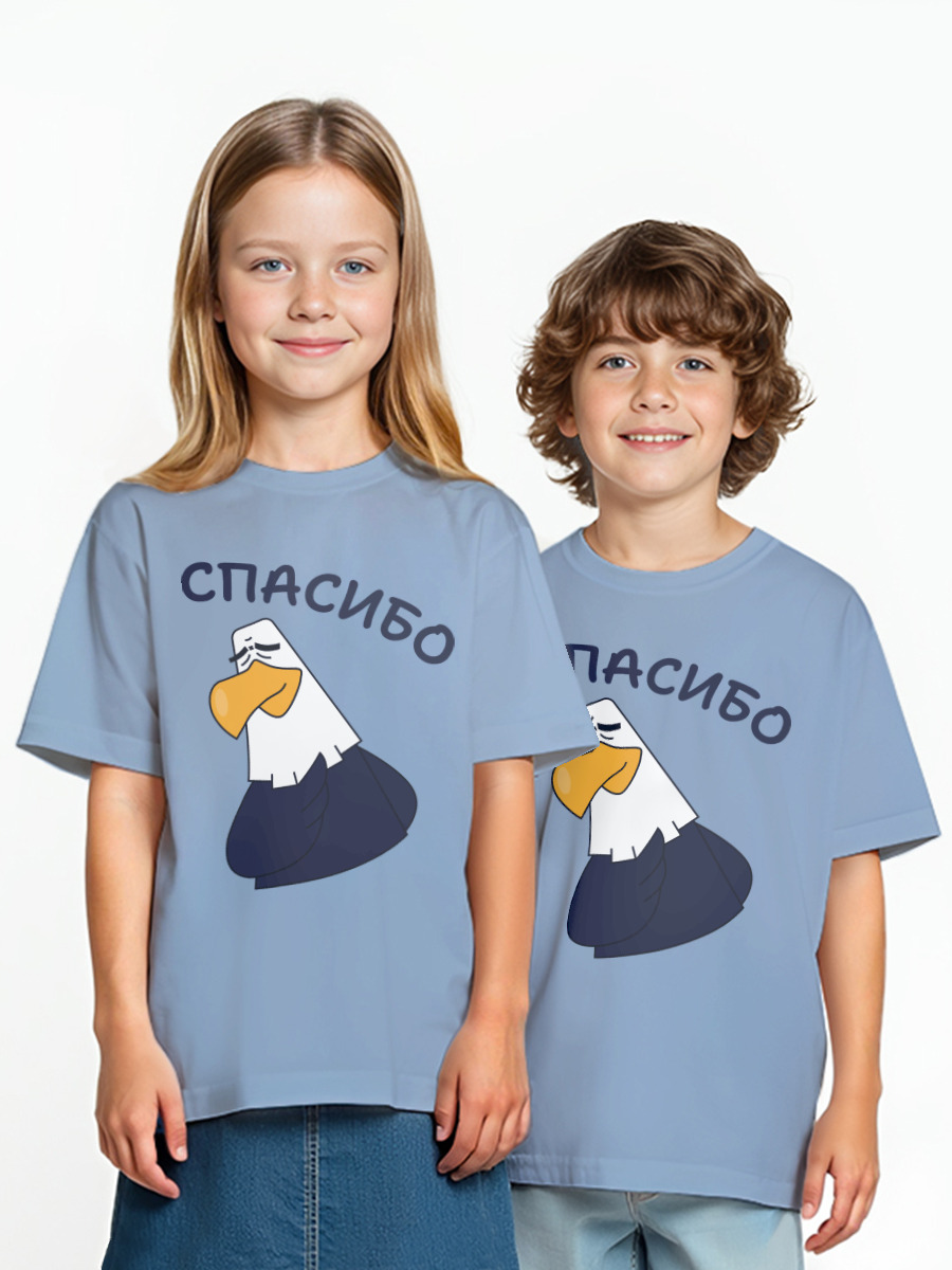 Детская оверсайз футболка «Спасибо» цвет голубой