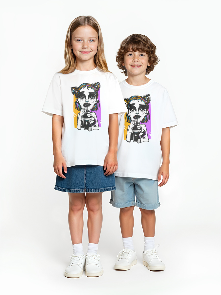 Детская оверсайз футболка «Стильная девушка» цвет белый