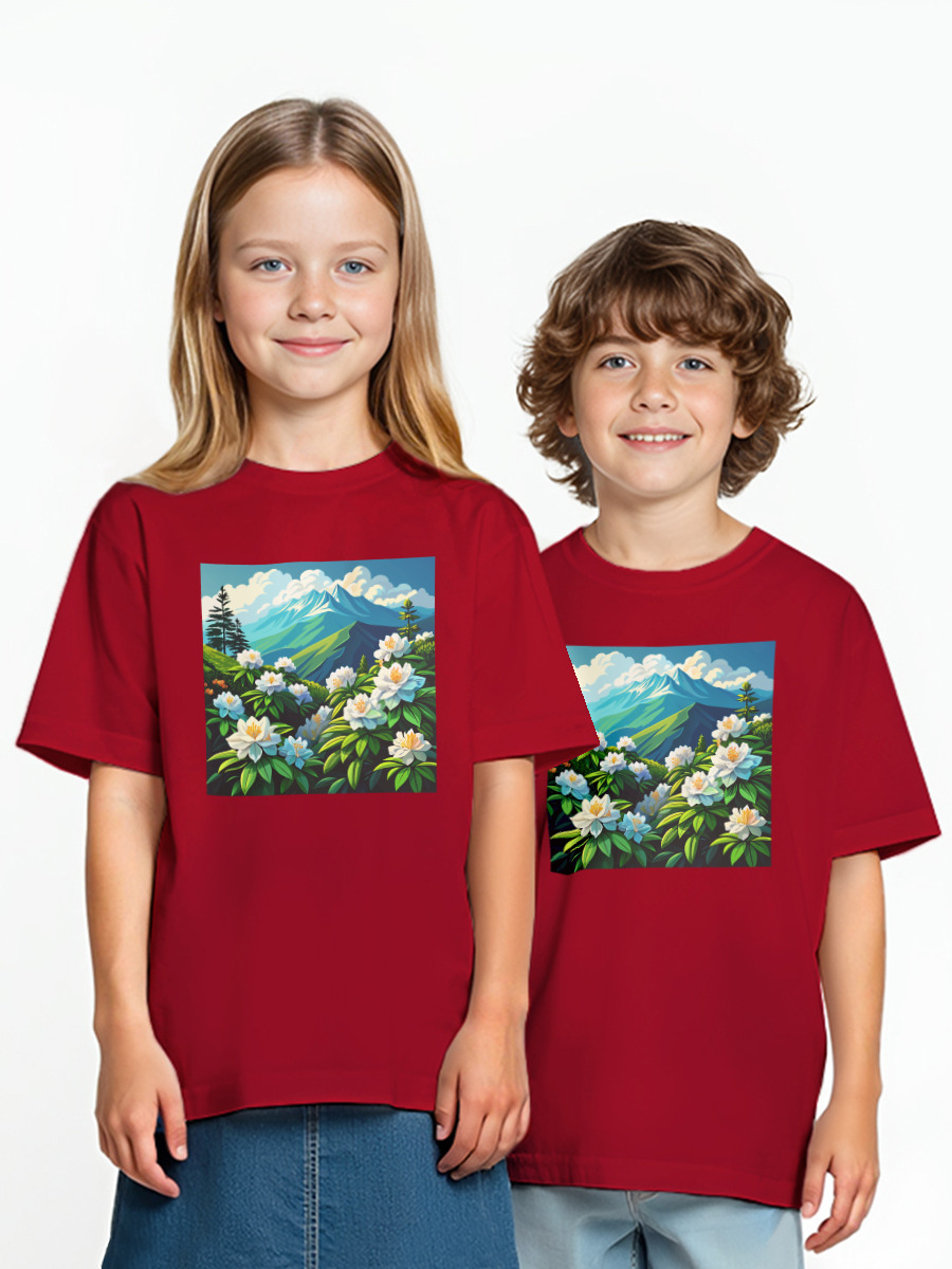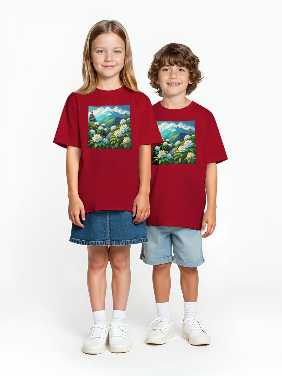 Детская оверсайз футболка «Цветы в горах» цвет красный