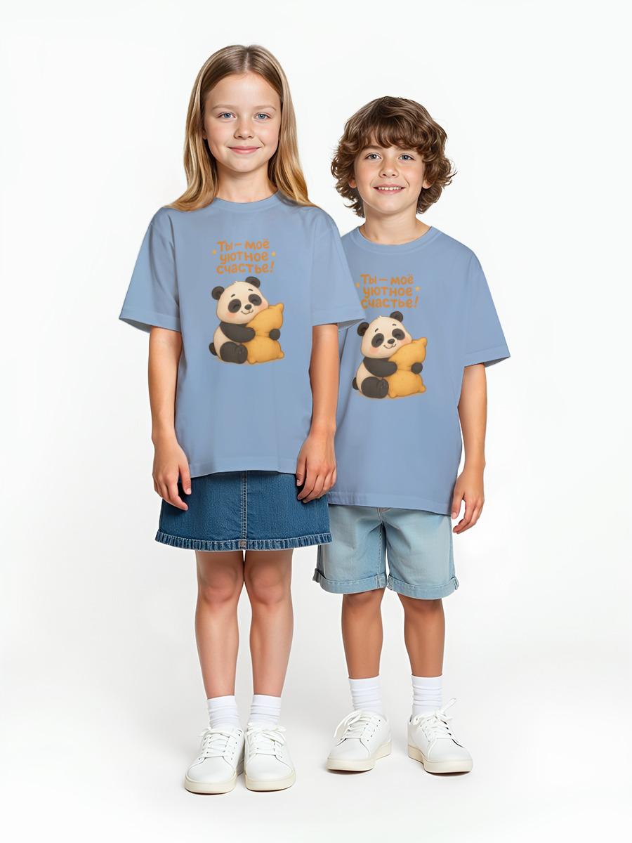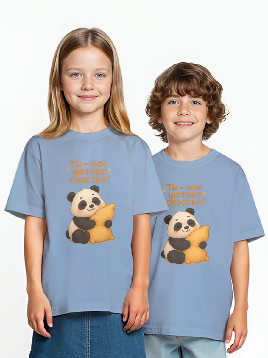 Детская оверсайз футболка «Ты - мое уютное счастье» цвет голубой