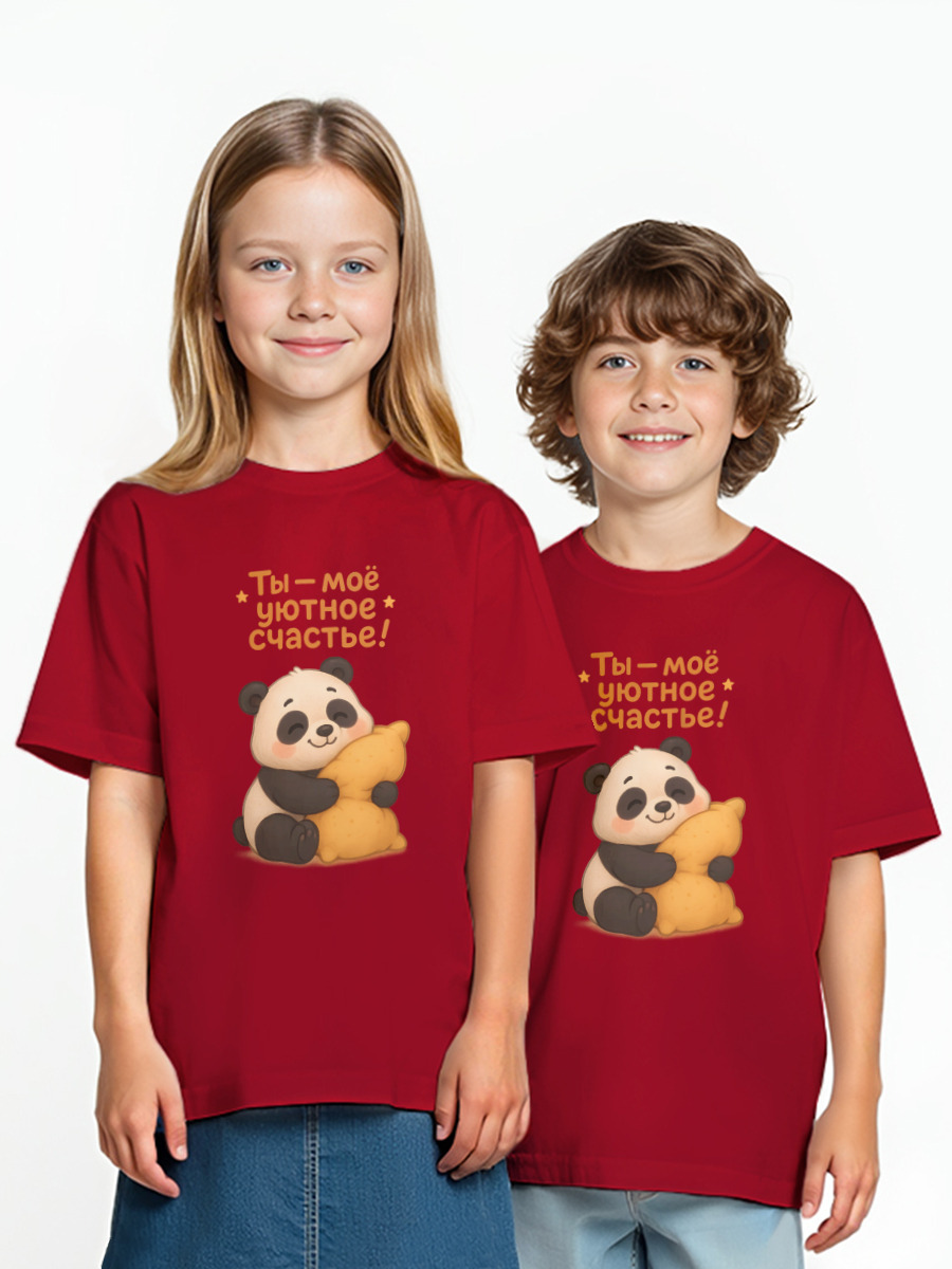 Детская оверсайз футболка «Ты - мое уютное счастье» цвет красный