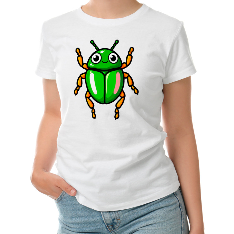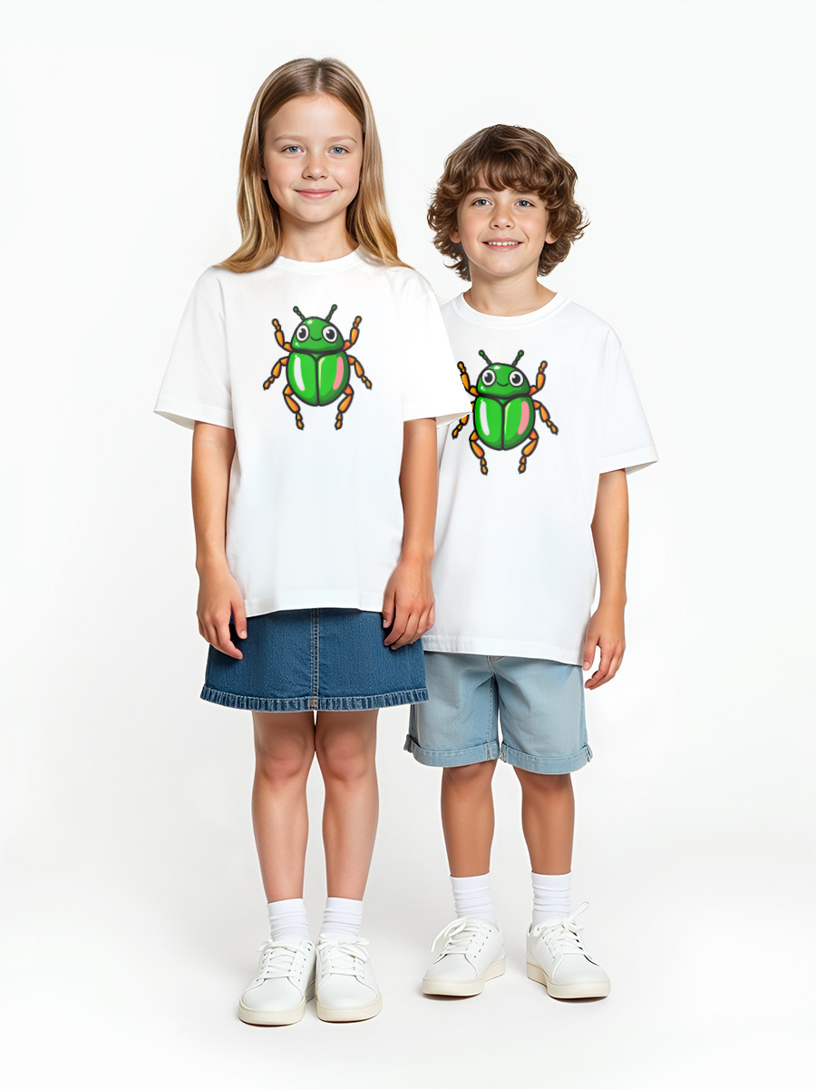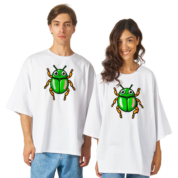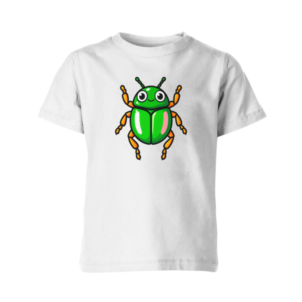 Детская оверсайз футболка «Улыбчивый зелёный жук» цвет белый