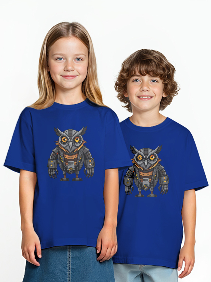 Детская оверсайз футболка «Высокопроизводительный робот сова» цвет синий