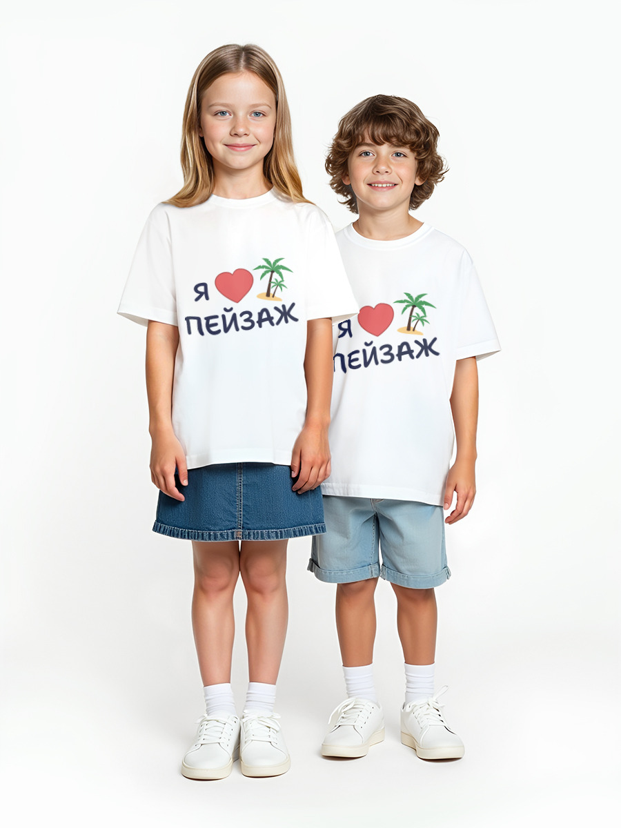 Детская оверсайз футболка «Я люблю пейзаж» цвет белый