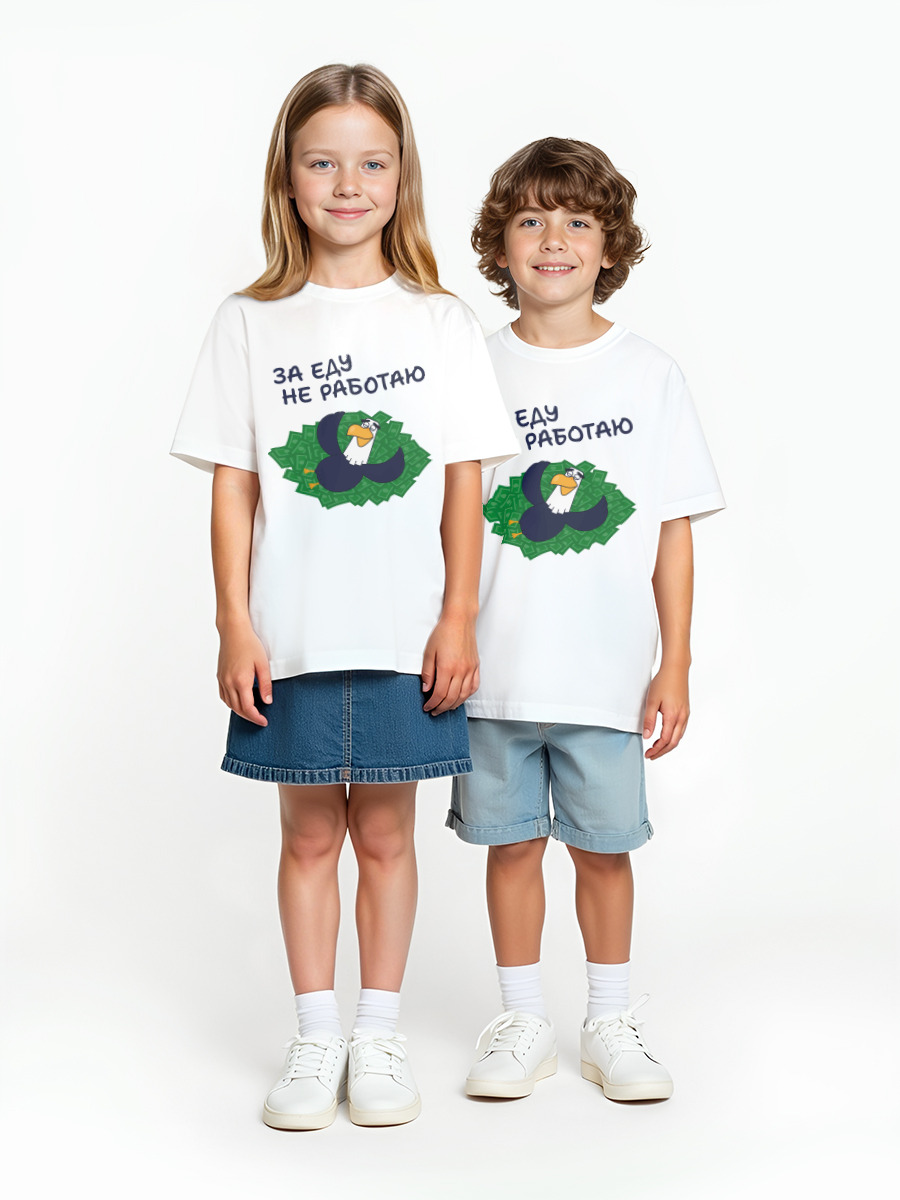 Детская оверсайз футболка «За еду не работаю» цвет белый