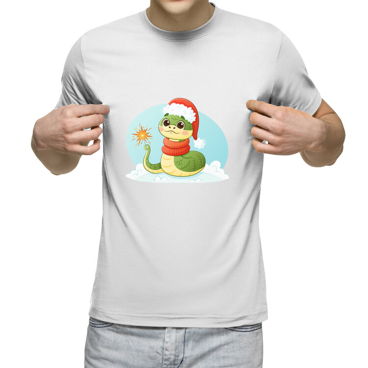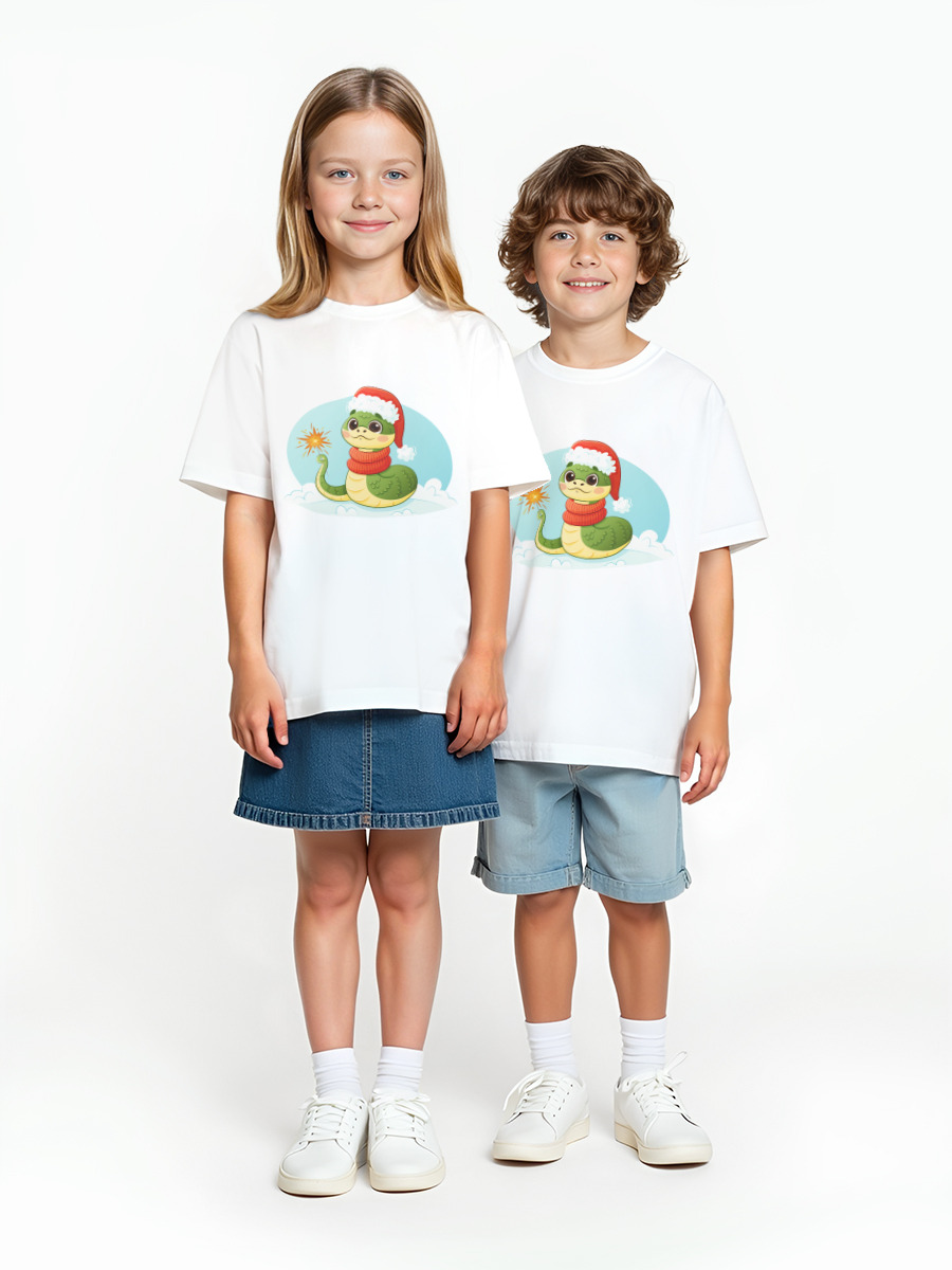 Детская оверсайз футболка «Змейка и Новый год» цвет белый