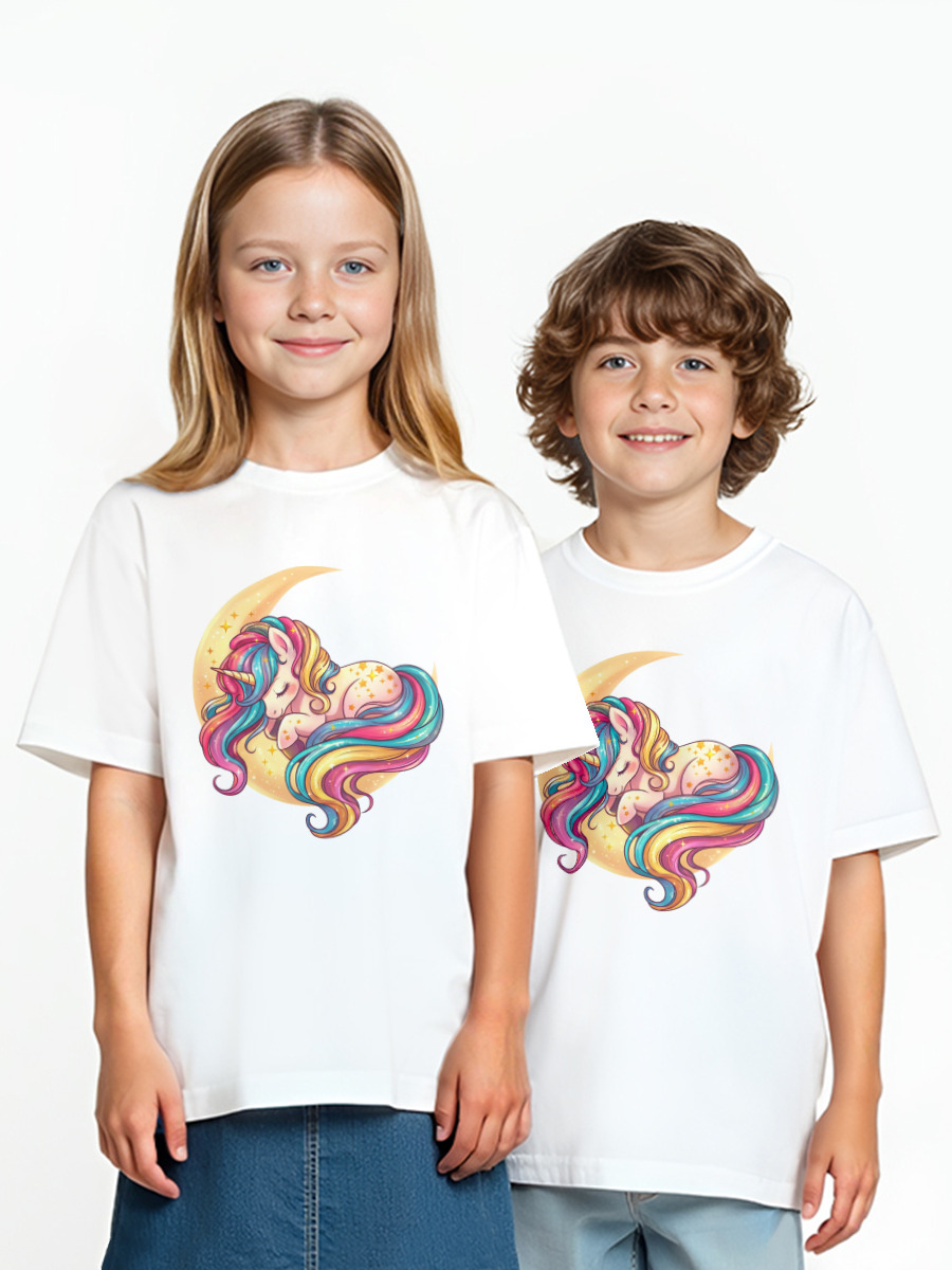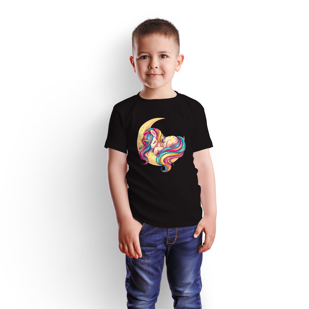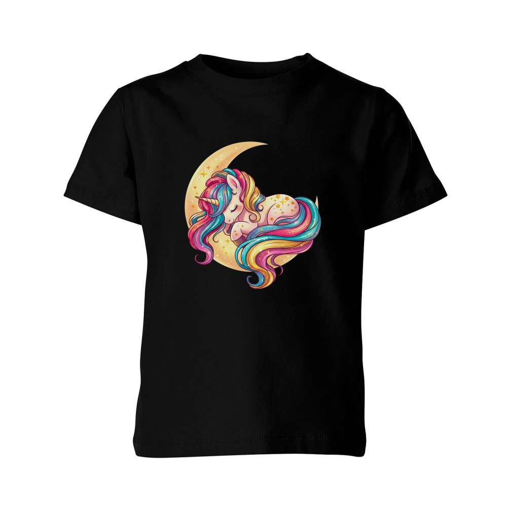 Детская футболка «Единорог на луне. Принт для девочки» цвет черный