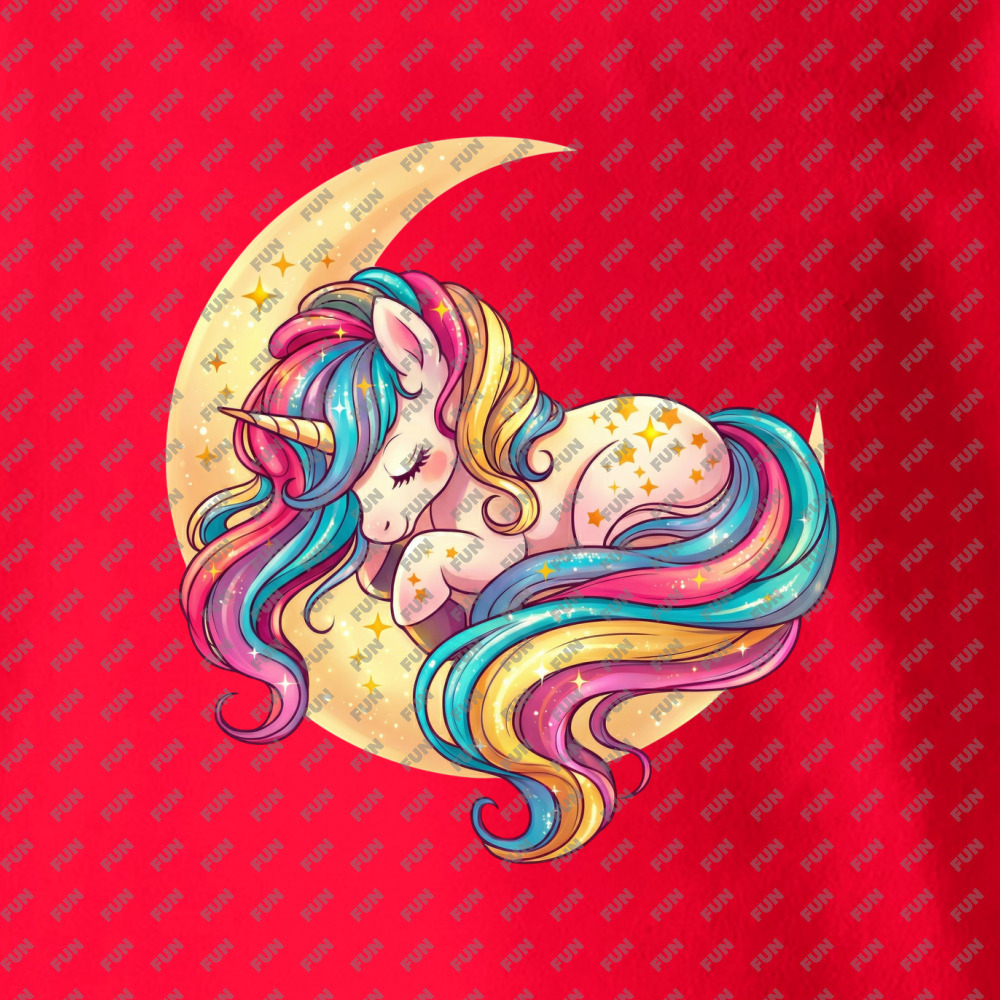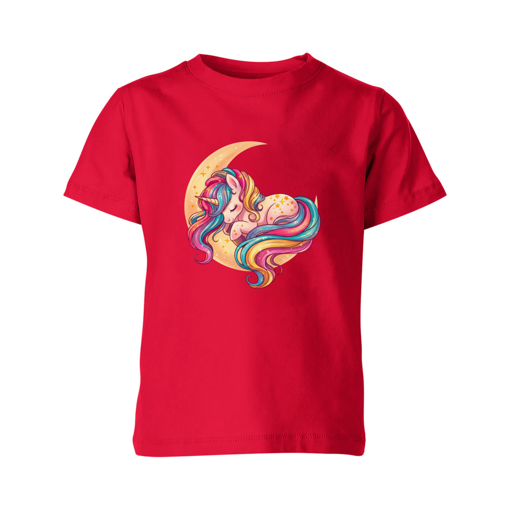 Детская футболка «Единорог на луне. Принт для девочки» цвет красный