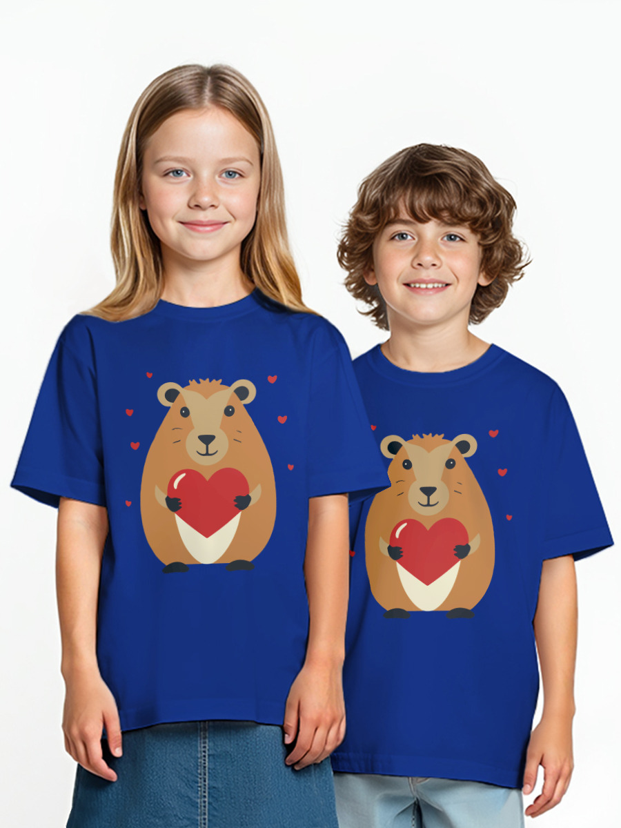 Детская футболка «капибара с сердцем. принт ко дню Валентина» цвет синий