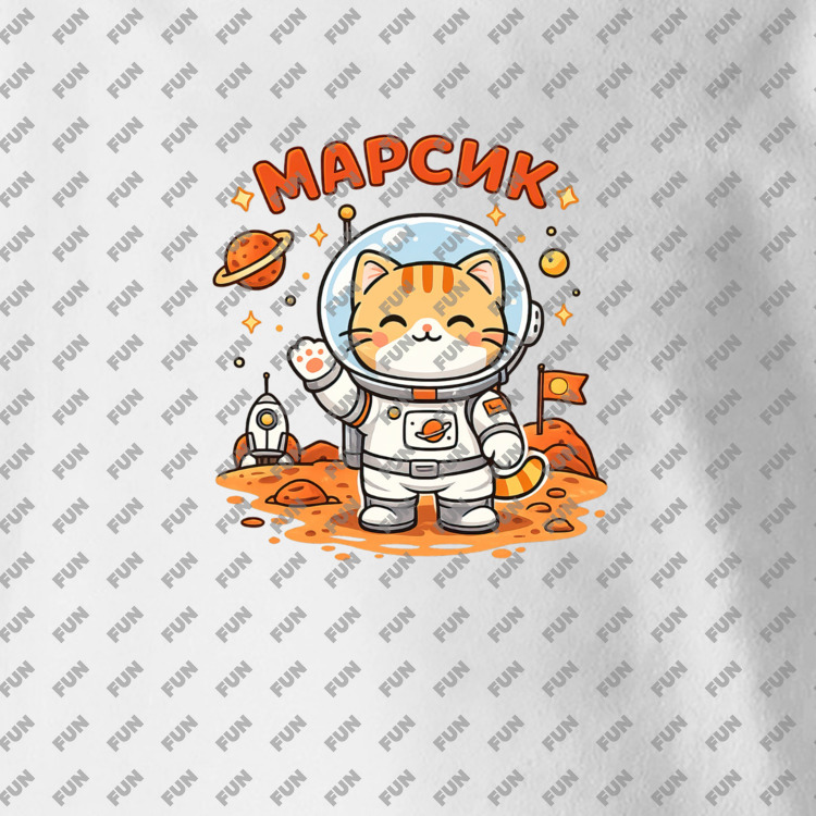Детская футболка «Кот марсик, космонавт» цвет белый