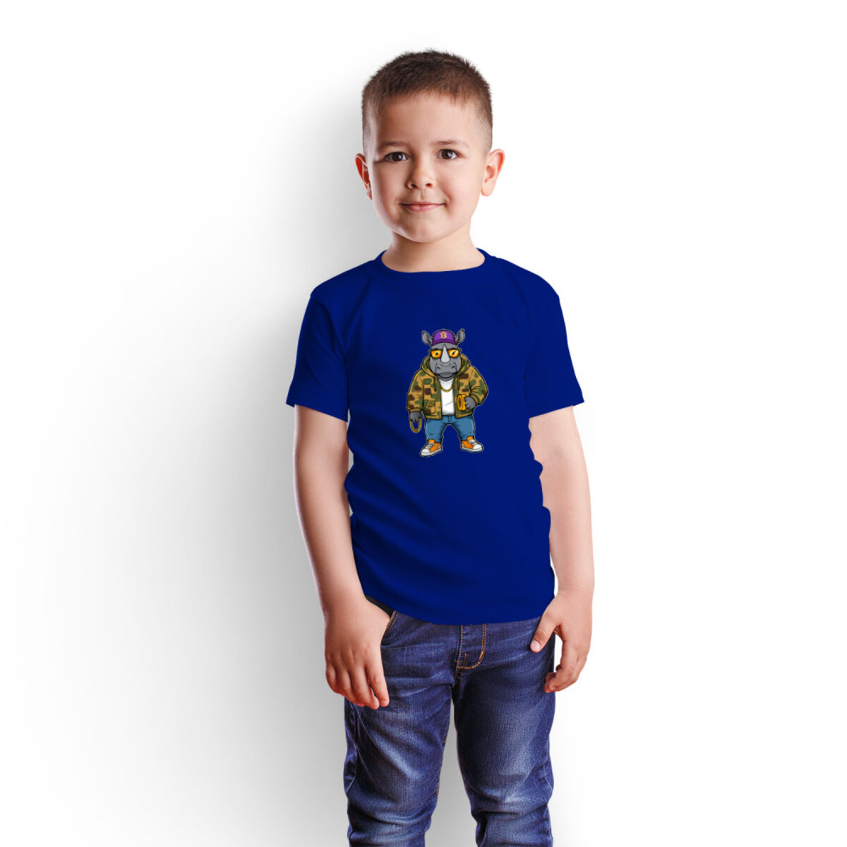 Детская футболка «Крутой носорог» цвет синий