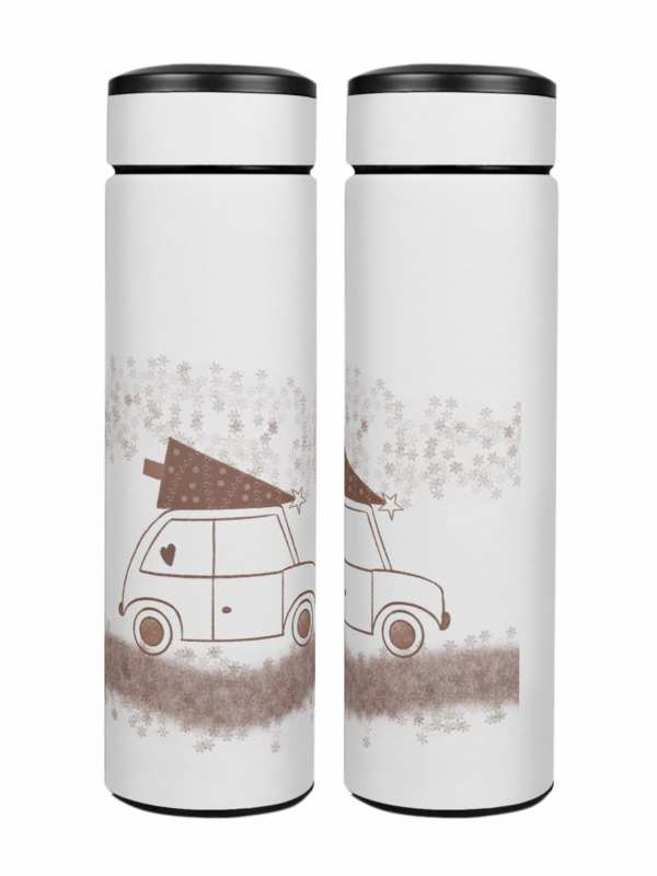 Детская футболка «Машина с новогодней елкой на крыше» цвет белый