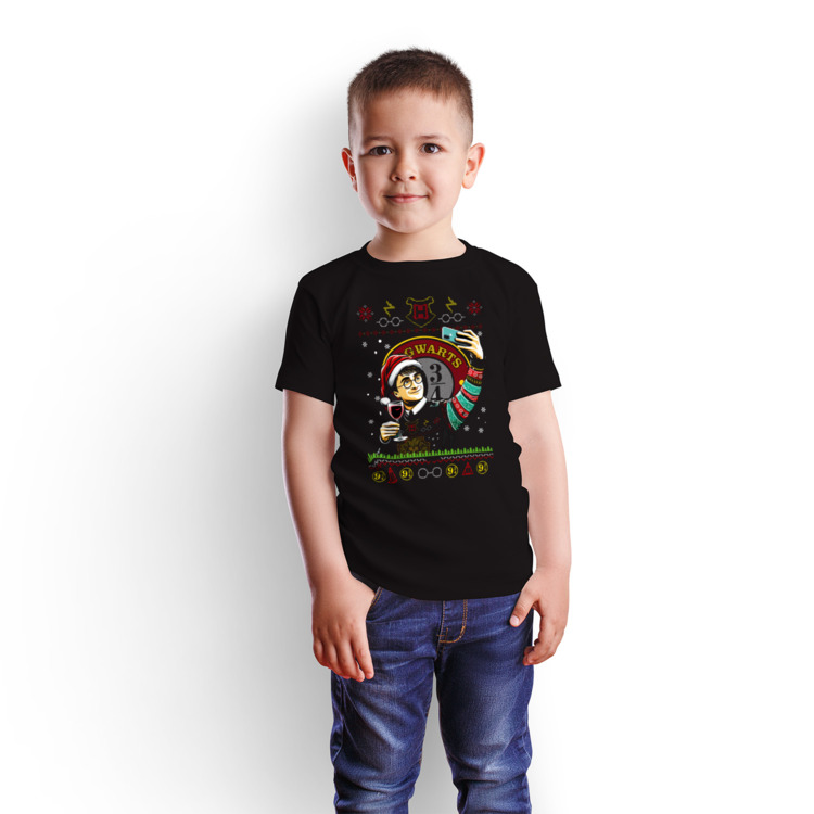 Детская футболка «Новый Год Гарри Поттер» цвет черный