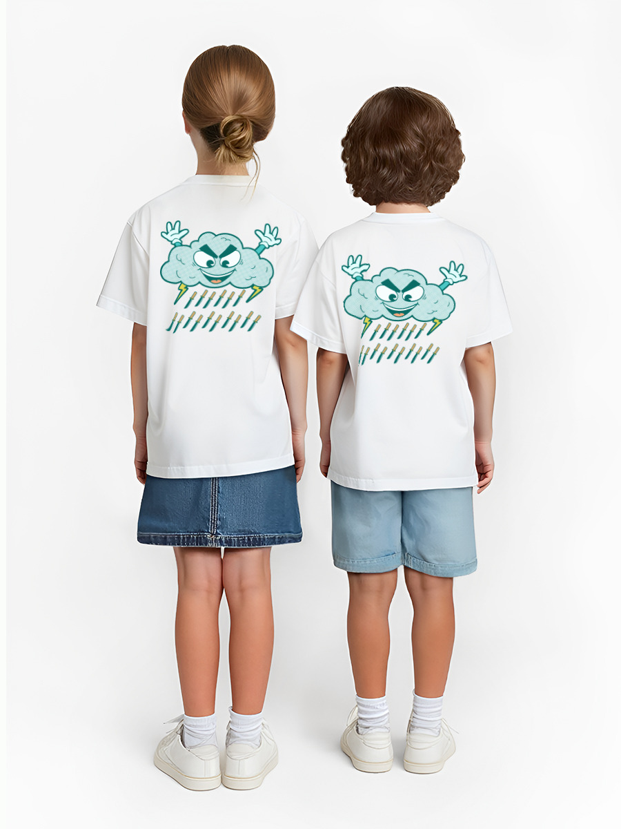 Детская футболка «Облако метает ножи,юмор,прикол,нож,молния» цвет белый
