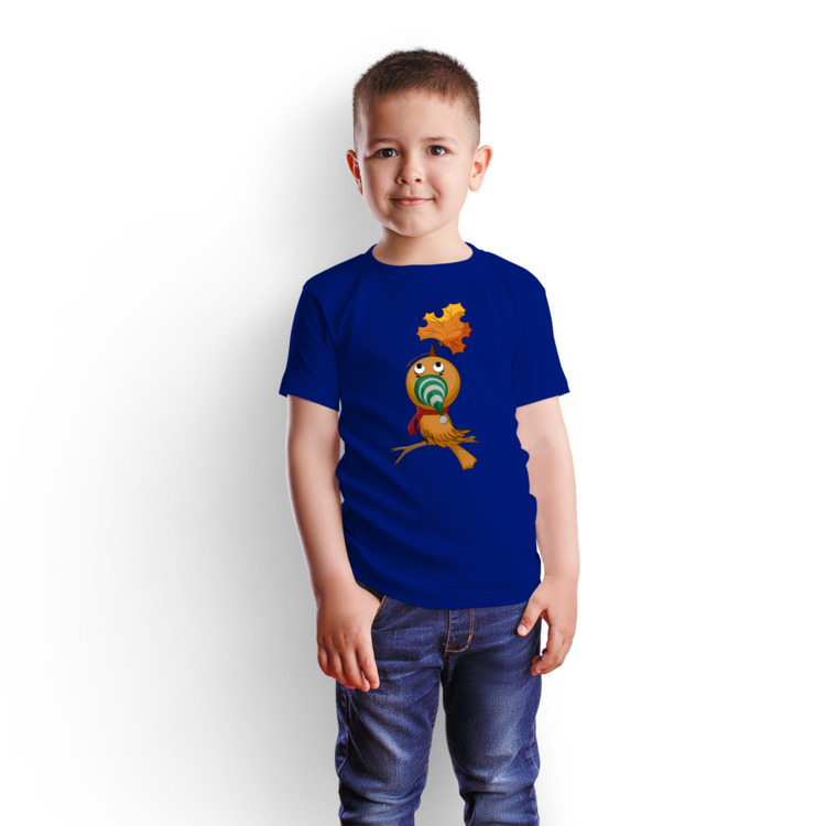 Детская футболка «Птенчик с осенним листиком» цвет синий