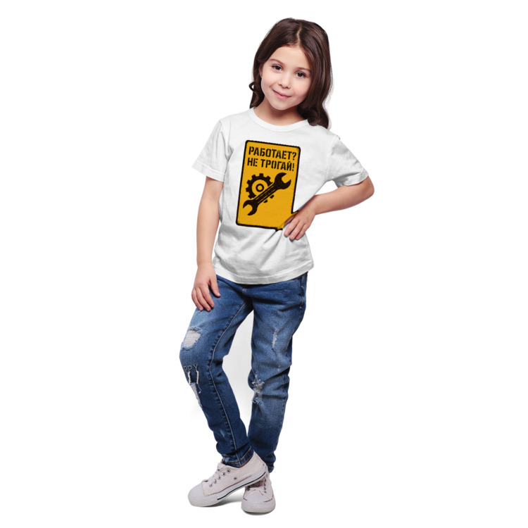 Детская футболка «Работает не трогай» цвет белый