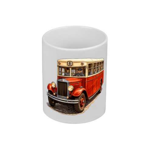 Детская футболка «Ретро автобус на улицах города» цвет белый