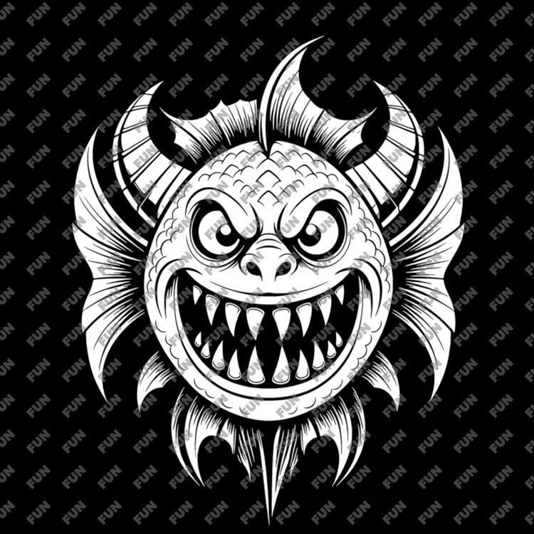 Детская футболка «Рыба-монстр с рогами» цвет черный
