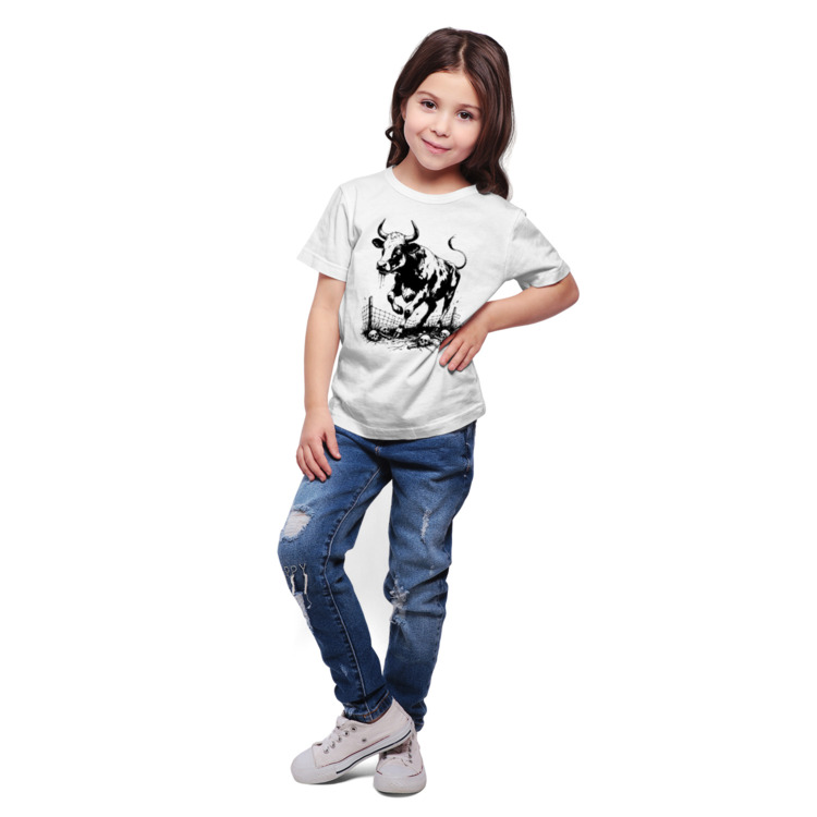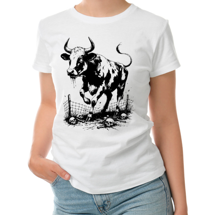 Детская футболка «Зомби-корова у кровавого забора» цвет белый
