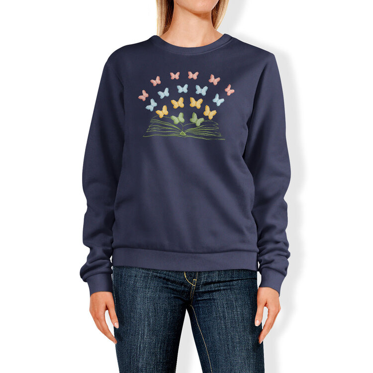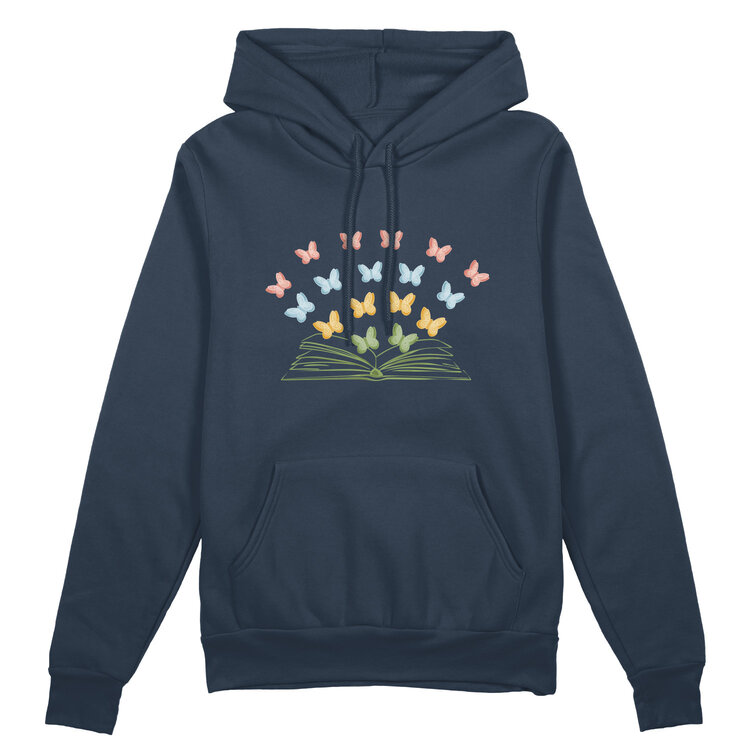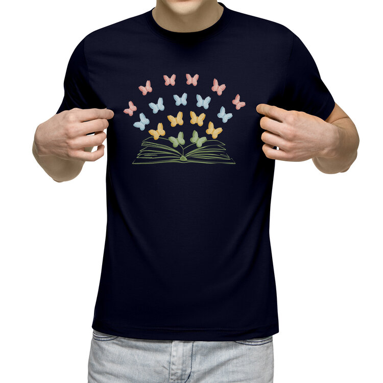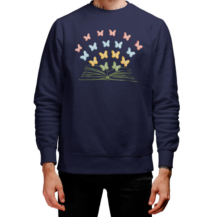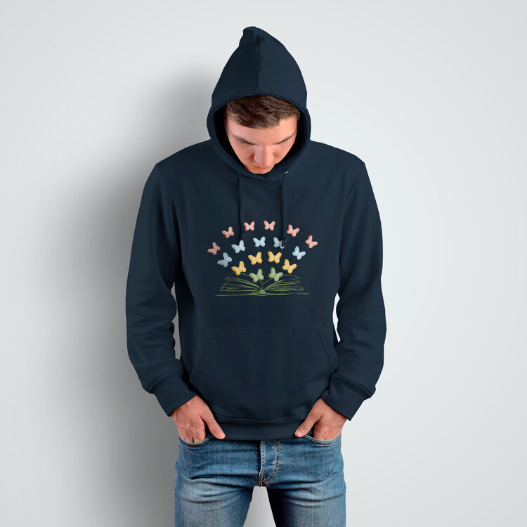Мужская толстовка «Бумажные бабочки вылетают из книги» цвет темно-синий