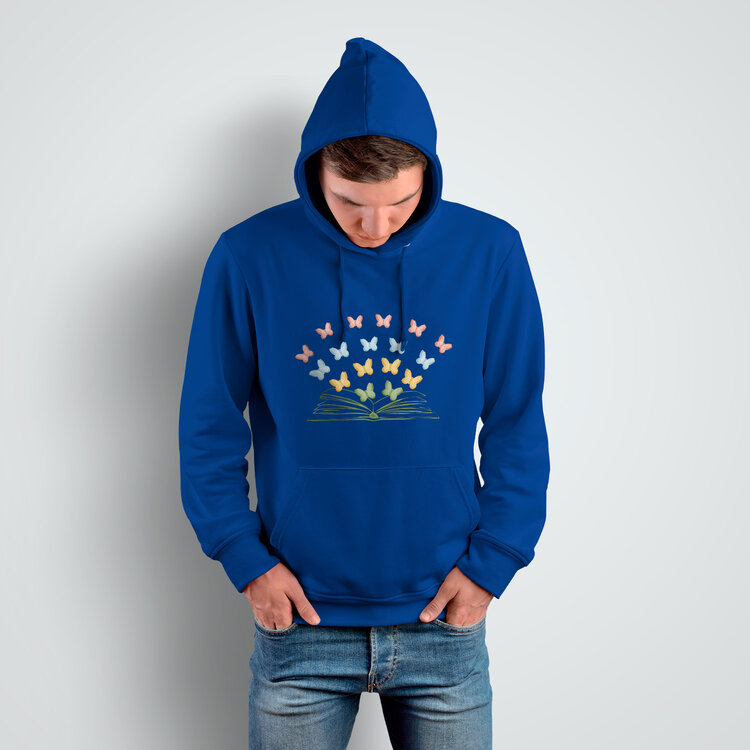 Мужская толстовка «Бумажные бабочки вылетают из книги» цвет синий