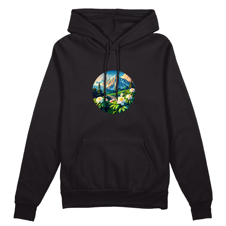 Мужская толстовка «Горы и цветы» цвет черный