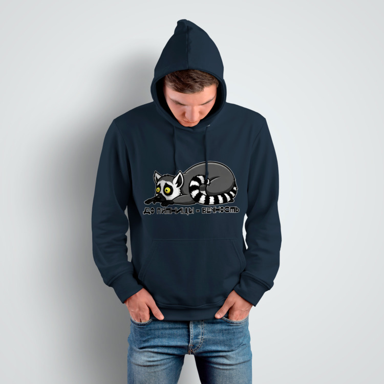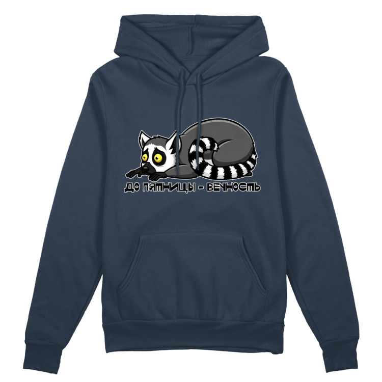 Мужская толстовка «Грустный лемур , до пятницы - вечность» цвет темно-синий