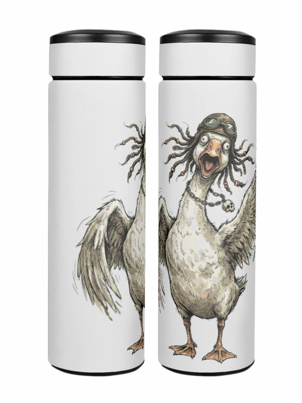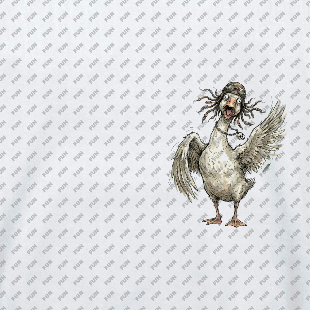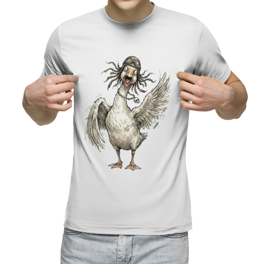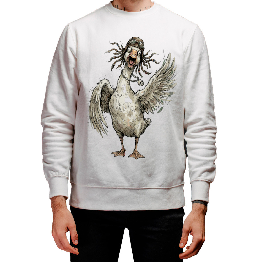 Мужская толстовка «Гусь орущий с дредами, в шлеме и очках» цвет белый