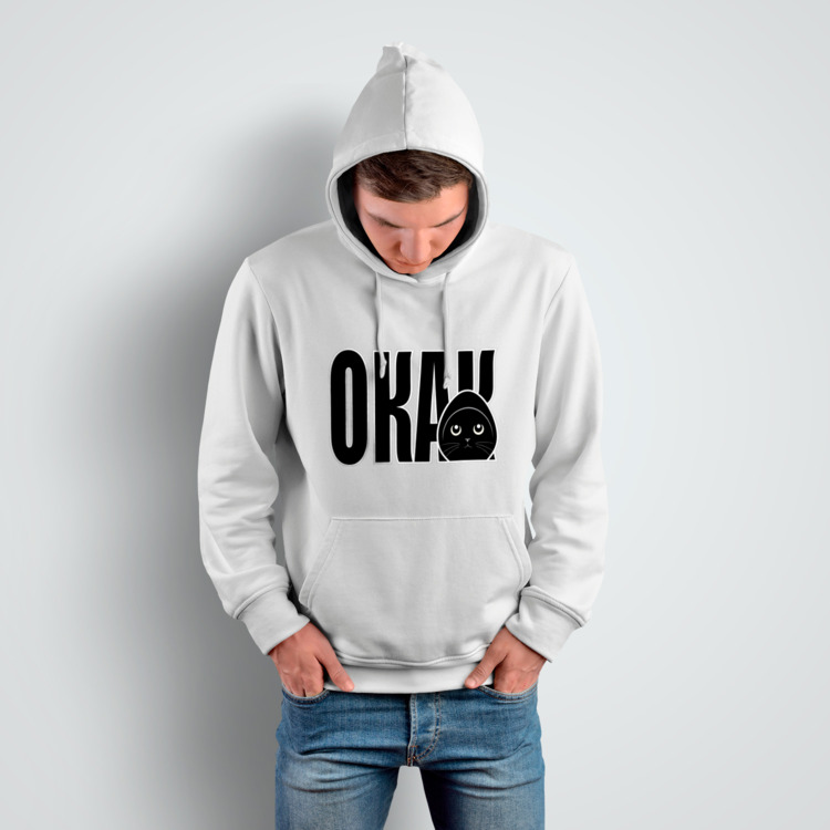 Мужская толстовка «Кот в капюшоне, окак, мем» цвет белый