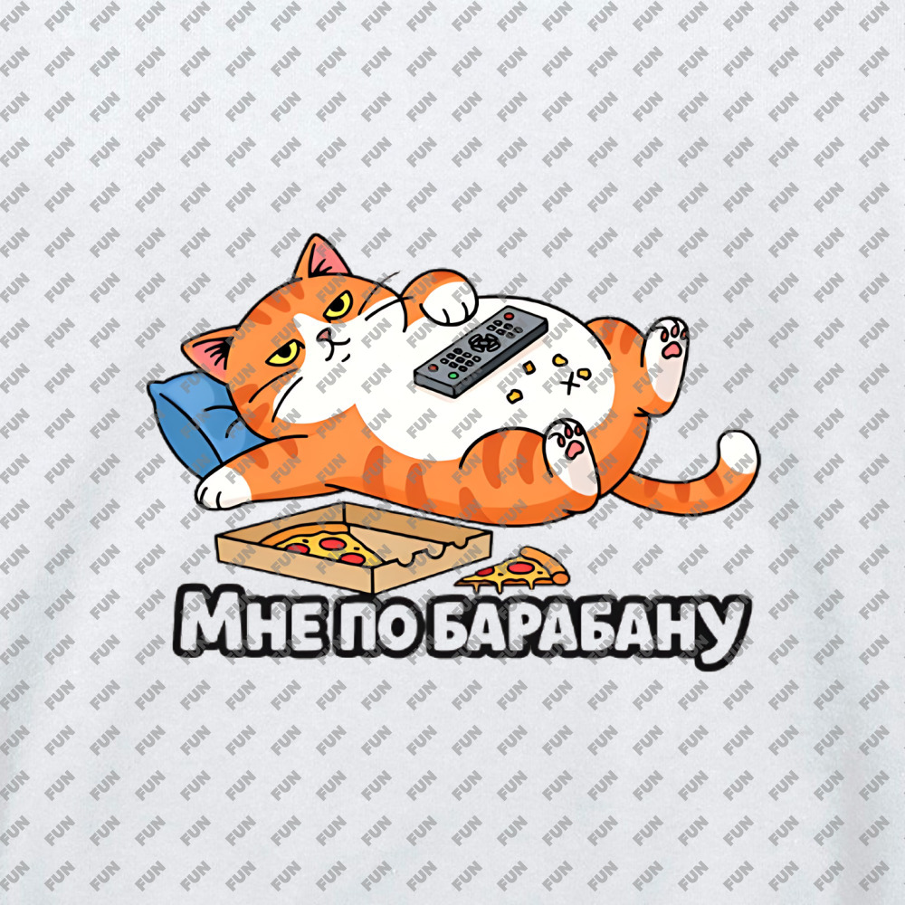 Мужская толстовка «Ленивый кот с пиццей-Мне по барабану» цвет белый