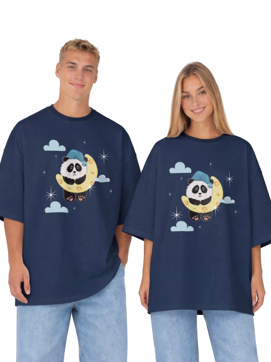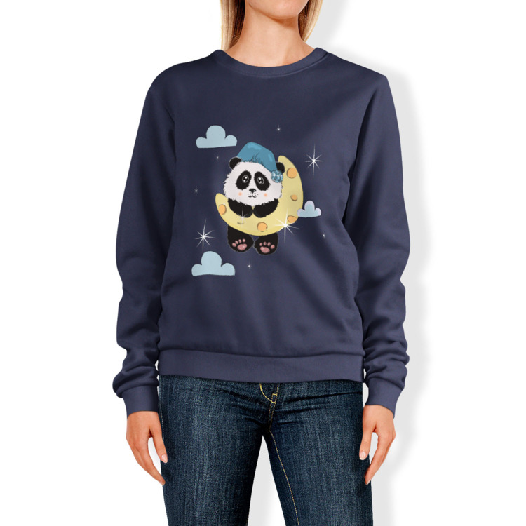Мужская толстовка «Малыш панда в ночном колпачке висит на месяце» цвет темно-синий