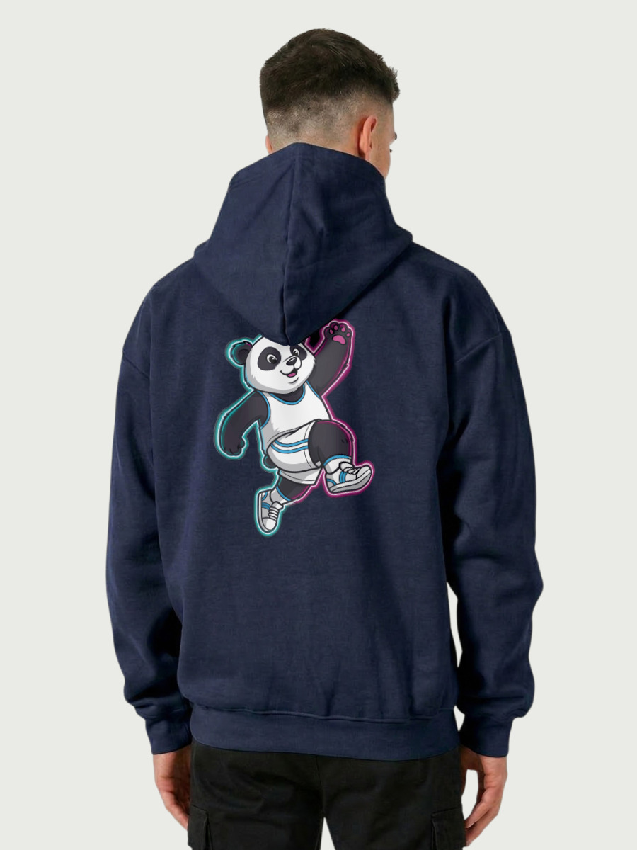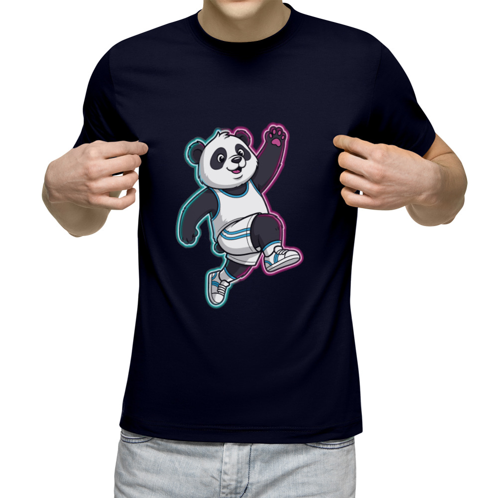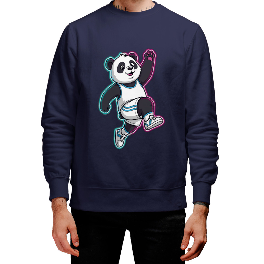 Мужская толстовка «Неоновая панда спортивный прыжок» цвет темно-синий