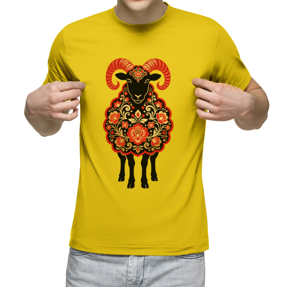 Мужская толстовка «Овен, Хохлома, русский стиль» цвет белый