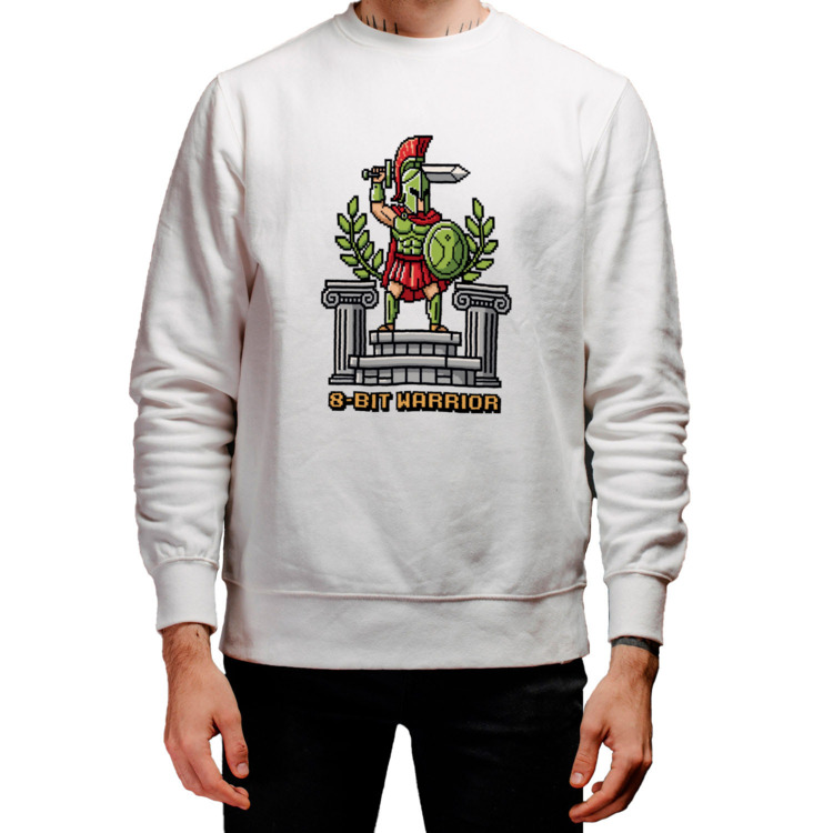 Мужская толстовка «Пиксельный спартанец - 8-битный воин» цвет белый