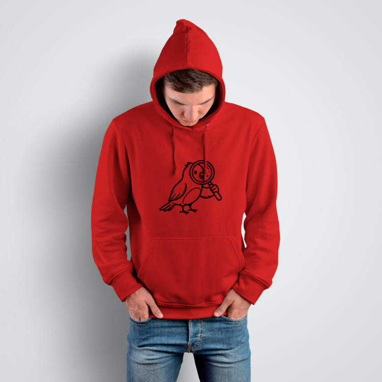 Мужская толстовка «Птица-сыщик с лупой в лапке» цвет красный