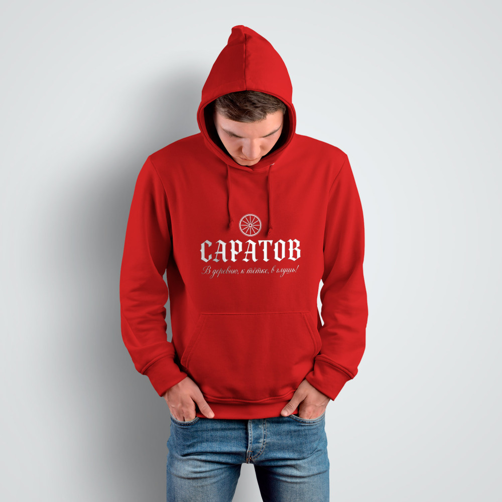 Мужская толстовка «Саратов - В деревню, к тётке, в глушь!» цвет красный