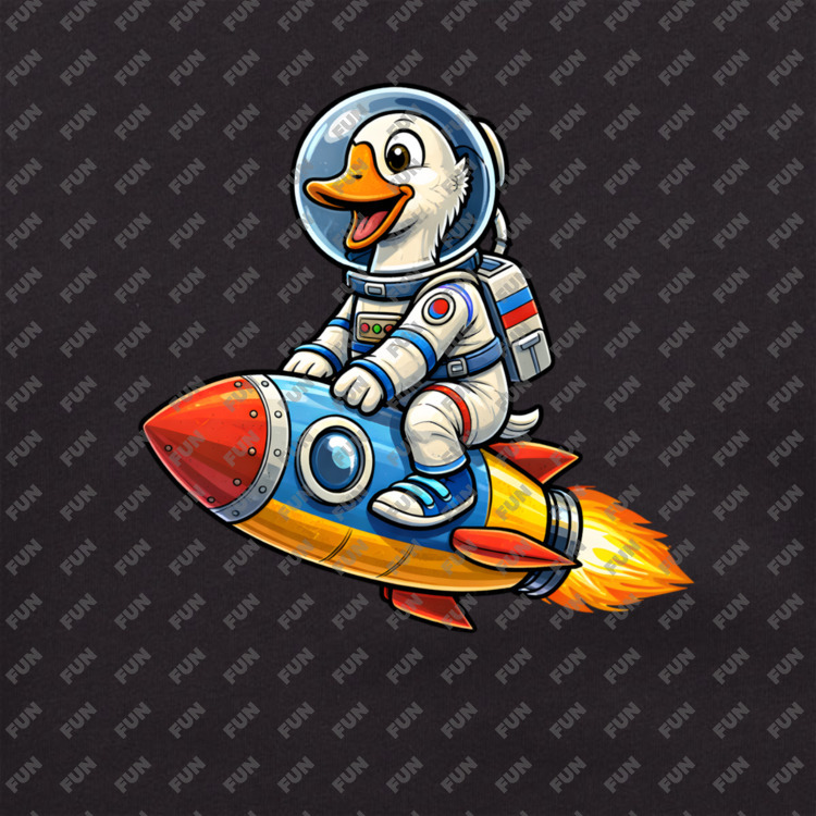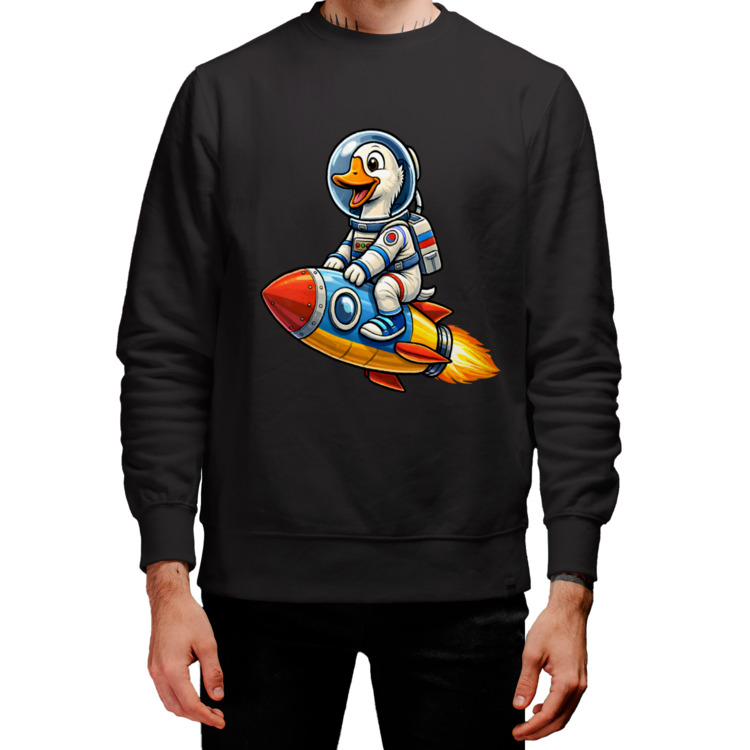 Мужской свитшот «Гусь- астронавт на маленькой ракете» цвет черный