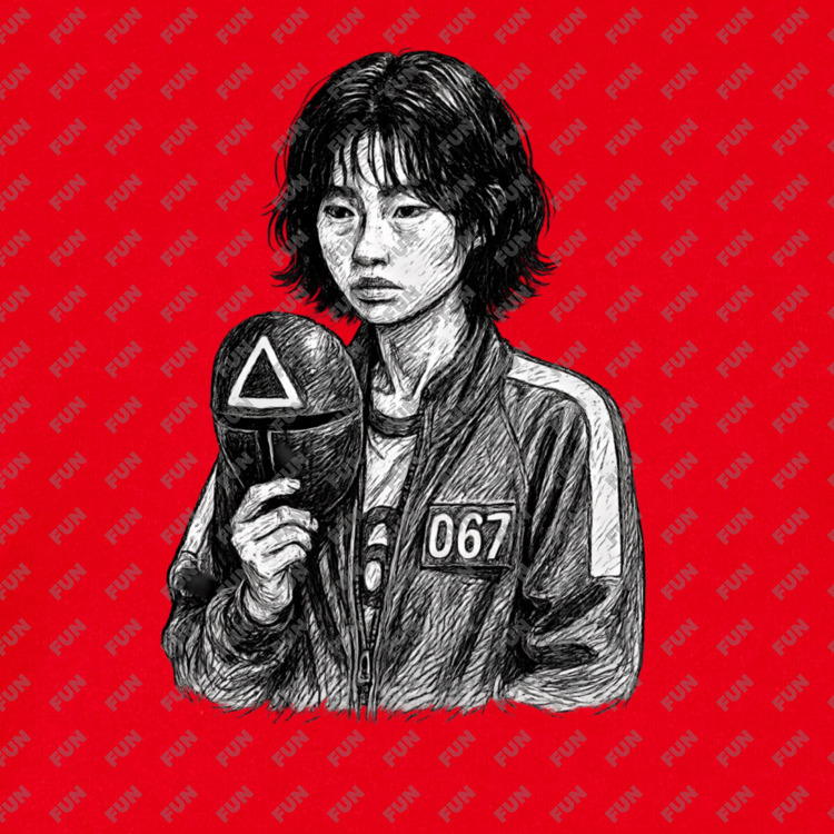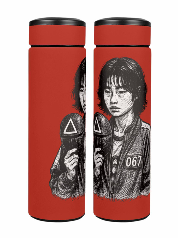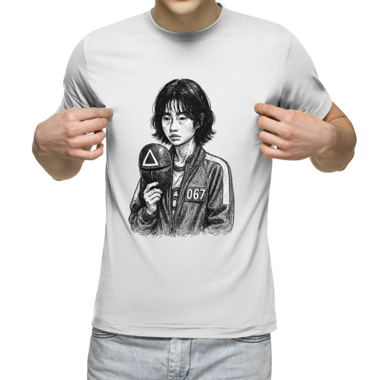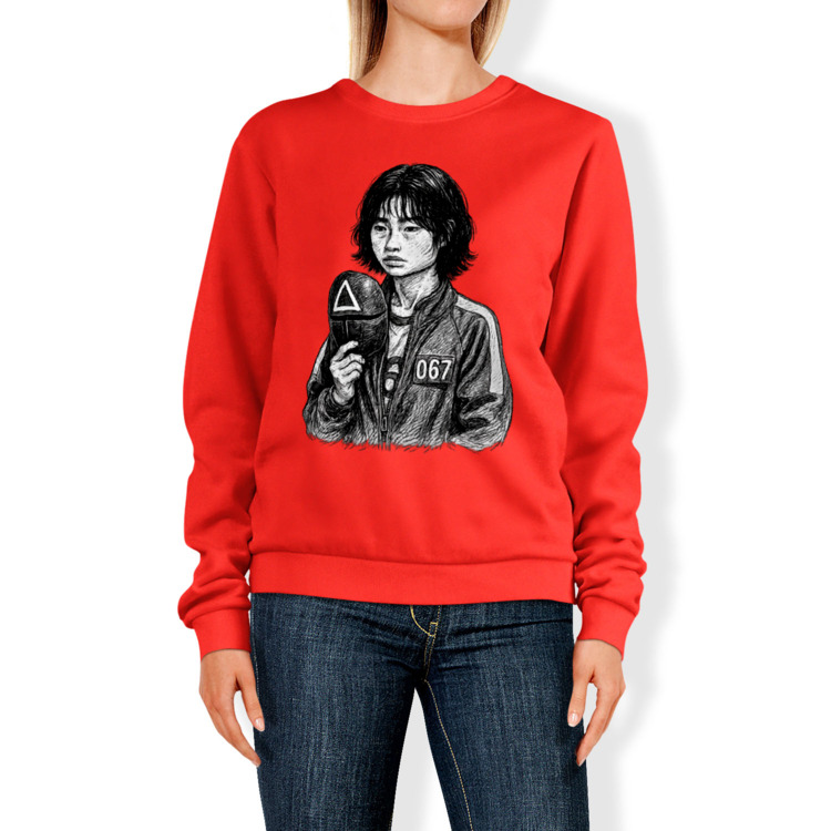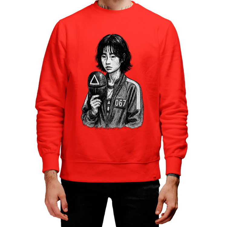Мужской свитшот «Игра в кальмара - игрок 067 с маской» цвет красный
