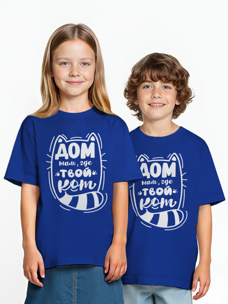 Мужской свитшот «Красивый леттеринг, надпись дом там, где твой кот» цвет темно-синий