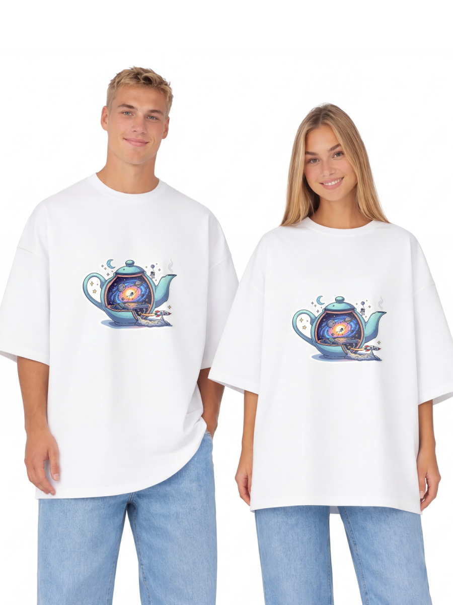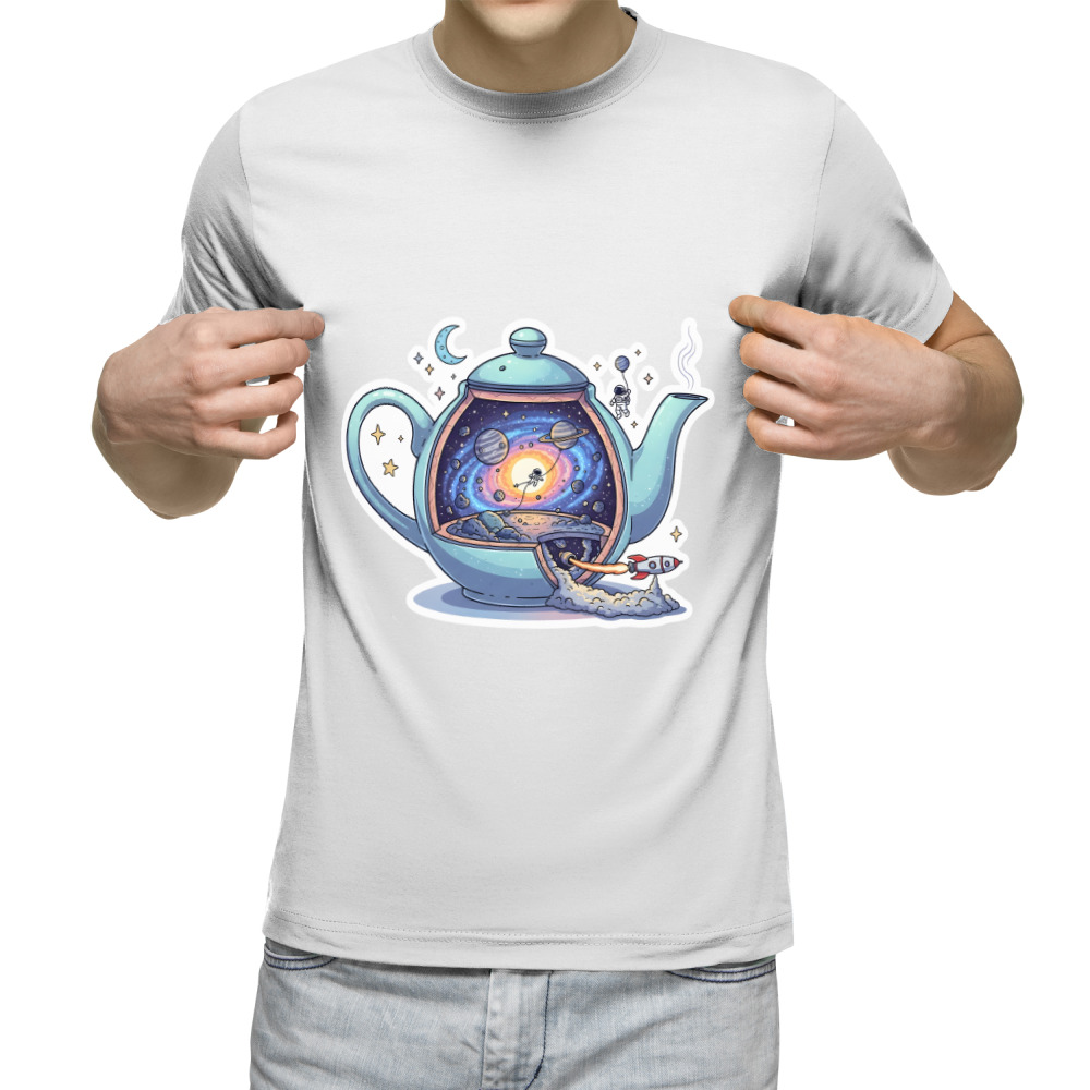 Мужской свитшот «Маленький космос внутри чайника» цвет белый