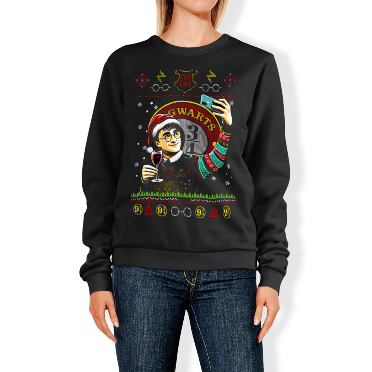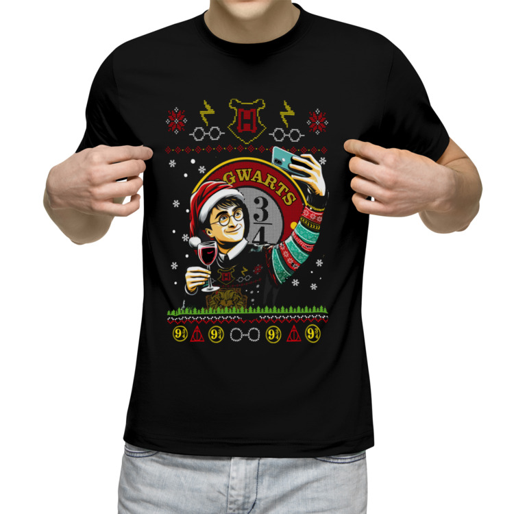 Мужской свитшот «Новый Год Гарри Поттер» цвет черный