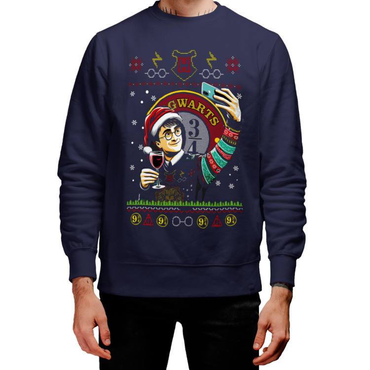 Мужской свитшот «Новый Год Гарри Поттер» цвет темно-синий